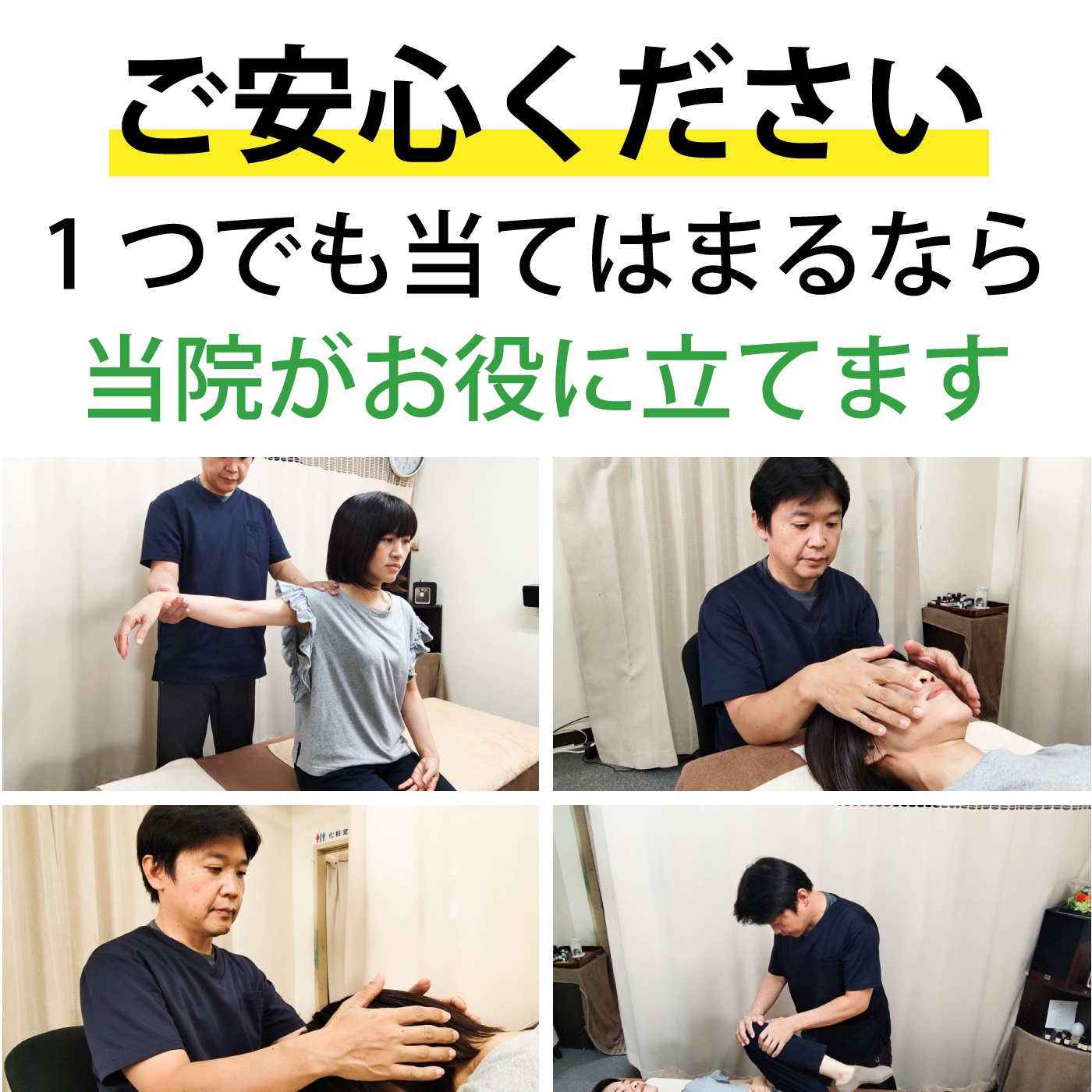 あなたも悩み・症状を改善したいとお考えなら、当院にご相談ください。