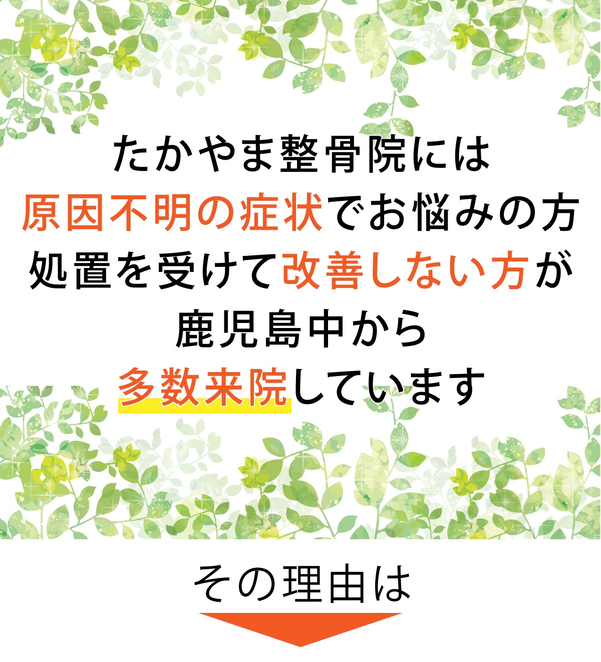 そのため改善を求めて鹿児島中から当院に来る方が多数いらっしゃり、そして悩みから解放されています。
